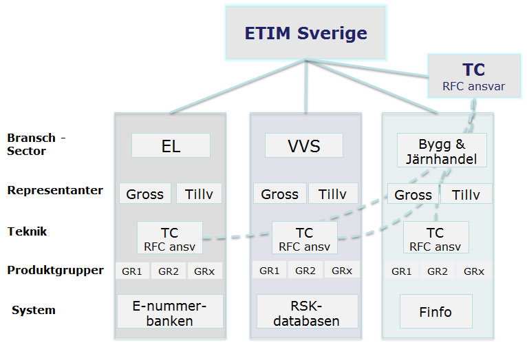 ETIM Sverige förvaltar den svenska översättningen av ETIM och samordnar den svenska marknadens behov av förändringar i ETIM.